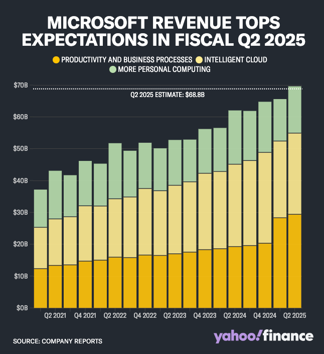 Microsoft reportó ingresos de $69.6 mil millones y un EPS de $3.23, superando las expectativas de Wall Street. Sin embargo, su negocio de nube, un pilar clave de crecimiento, quedó por debajo de las proyecciones con ingresos de $40 mil millones, frente a los $41.1 mil millones esperados. Azure, su plataforma en la nube, creció un 13% impulsado por servicios de inteligencia artificial, pero la expansión en infraestructura redujo el margen bruto del segmento al 70%. La reacción del mercado fue negativa, con una caída del 4% en el valor de sus acciones tras el anuncio, mientras los inversionistas evalúan si el agresivo gasto de Microsoft en IA, incluyendo $80 mil millones en centros de datos para 2025, tendrá el retorno esperado.